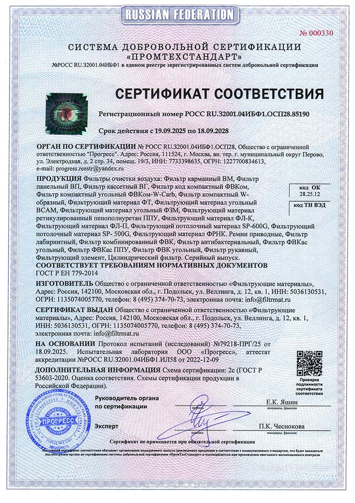Сертификаты ГОСТ Р ЕН 779-2014 (2025) ГОСТ Р ЕН 779-2014 (2024) лист 1 ГОСТ Р ЕН 779-2014 (2024) лист 2 Декларация о соответствии ТР ТС ГОСТ Р ЕН 1822-1-2010 (2024) лист 1 ГОСТ Р ЕН 1822-1-2010 (2024) лист 2